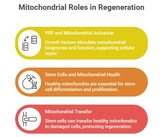 Regenerative medicine is transforming healthcare by enabling damaged tissues and organs to heal faster and more effectively. Central to this revolution are Platelet-Rich Plasma (PRP) therapy, stem cell treatments, and a tiny but mighty cellular component: the mitochondria. Together, they orchestrate the complex process of cellular repair and tissue regeneration. The Powerhouse Behind Regeneration: Mitochondria Often called the “powerhouses of the cell,” mitochondria do far more than just produce energy. They regulate: ATP production: fueling cell growth, migration, and repair Reactive Oxygen Species (ROS): signaling molecules that trigger regeneration in moderate amounts Calcium balance: essential for cell communication during repair Apoptosis: removing damaged cells to make way for healthy tissue In regenerative therapies, healthy mitochondria are critical because tissue repair is energy-intensive. Without them, even advanced treatments like PRP or stem cell therapy may fall short. PRP Therapy: Activating Mitochondria for Healing Platelet-Rich Plasma (PRP) therapy uses concentrated platelets from your blood to accelerate healing. Platelets release growth factors and cytokines that directly act on damaged tissues. Here’s how mitochondria play a key role: Boosting Energy: Growth factors stimulate mitochondria to produce more ATP, powering the repair process. Reducing Oxidative Stress: PRP helps mitochondria balance ROS, preventing further cellular damage. Cell Proliferation: Active mitochondria enable fibroblasts and other cells to multiply, rebuilding tissue efficiently. Angiogenesis Support: Mitochondria in endothelial cells help form new blood vessels, supplying nutrients to regenerating tissue. By supporting mitochondrial activity, PRP therapy enhances tissue repair, reduces scarring, and accelerates recovery. Stem Cell Therapy: Mitochondria at the Heart of Regeneration Stem cell therapy introduces multipotent cells capable of differentiating into the types of cells a tissue needs. Mitochondria ensure that these stem cells function optimally: Activation and Differentiation: Healthy mitochondria determine whether stem cells divide, differentiate, or remain dormant. Energy Supply for Repair: Regeneration requires ATP for cell division, migration, and synthesis of extracellular matrix. Signaling Coordination: Mitochondria regulate ROS and calcium, guiding stem cells to damaged tissue. Mitophagy & Quality Control: Damaged mitochondria are removed to ensure only healthy cells contribute to tissue repair. Stem cells, with mitochondria working efficiently, can regenerate tissues in joints, skin, and even organs more effectively. PRP and Stem Cells: A Synergistic Approach Many regenerative protocols now combine PRP and stem cell therapy. The synergy works because: PRP primes stem cells by enhancing mitochondrial activity. Stem cells, powered by robust mitochondria, proliferate and differentiate more efficiently. Together, they maximize tissue regeneration, improving outcomes in musculoskeletal injuries, skin rejuvenation, and more. Supporting Mitochondrial Health for Regeneration While therapies can enhance mitochondria locally, general cellular health also plays a role. Supporting mitochondrial function systemically includes: Nutrition: CoQ10, alpha-lipoic acid, and omega-3 fatty acids support mitochondrial energy production. Exercise: Aerobic and resistance training enhance mitochondrial biogenesis. Reducing Oxidative Stress: Antioxidant-rich diets and stress management protect mitochondria. Healthy mitochondria are the foundation for effective PRP and stem cell therapies. Optimize Your Diet Diet plays a crucial role in mitochondrial health. Focus on a whole-foods, nutrient-dense diet rich in healthy fats, lean proteins, and complex carbohydrates. Healthy Fats: Incorporate sources like avocados, nuts, seeds, olive oil, and fatty fish (salmon, mackerel, sardines). These provide essential building blocks for mitochondrial membranes and energy production. Lean Proteins: Choose sources like chicken, turkey, fish, beans, and lentils. Protein provides amino acids necessary for building and repairing mitochondrial proteins. Complex Carbohydrates: Opt for vegetables, fruits, and whole grains like quinoa and brown rice. These provide a steady source of glucose for energy production, avoiding the blood sugar spikes associated with processed carbohydrates. Limit Processed Foods, Sugar, and Refined Carbohydrates: These can contribute to inflammation and oxidative stress, damaging mitochondria. Consider Intermittent Fasting: This can promote mitochondrial biogenesis (the creation of new mitochondria) and improve mitochondrial function. Engage in Regular Exercise Exercise is a powerful stimulus for mitochondrial biogenesis and improved function. Aerobic Exercise: Activities like running, swimming, cycling, and brisk walking improve cardiovascular health and increase mitochondrial density in muscle tissue. Aim for at least 150 minutes of moderate-intensity or 75 minutes of vigorous-intensity aerobic exercise per week. Resistance Training: Weightlifting and bodyweight exercises build muscle mass, which increases the number of mitochondria in the body. Aim for at least two strength training sessions per week, targeting all major muscle groups. High-Intensity Interval Training (HIIT): Short bursts of intense exercise followed by periods of rest can significantly boost mitochondrial function. Avoid Over-Training: Excessive exercise without adequate recovery can lead to oxidative stress and mitochondrial damage. Prioritize Quality Sleep Sleep is essential for cellular repair and regeneration, including mitochondrial function. Aim for 7-9 Hours of Sleep Per Night: Consistent sleep deprivation can impair mitochondrial function and increase oxidative stress. Establish a Regular Sleep Schedule: Go to bed and wake up at the same time each day, even on weekends, to regulate your body’s natural sleep-wake cyc