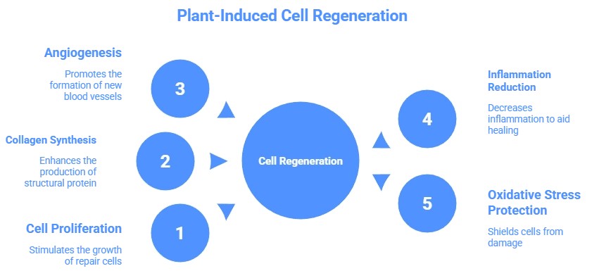 - Protection Against Oxidative Stress: Antioxidants from plants protect regenerating cells from free radical damage.